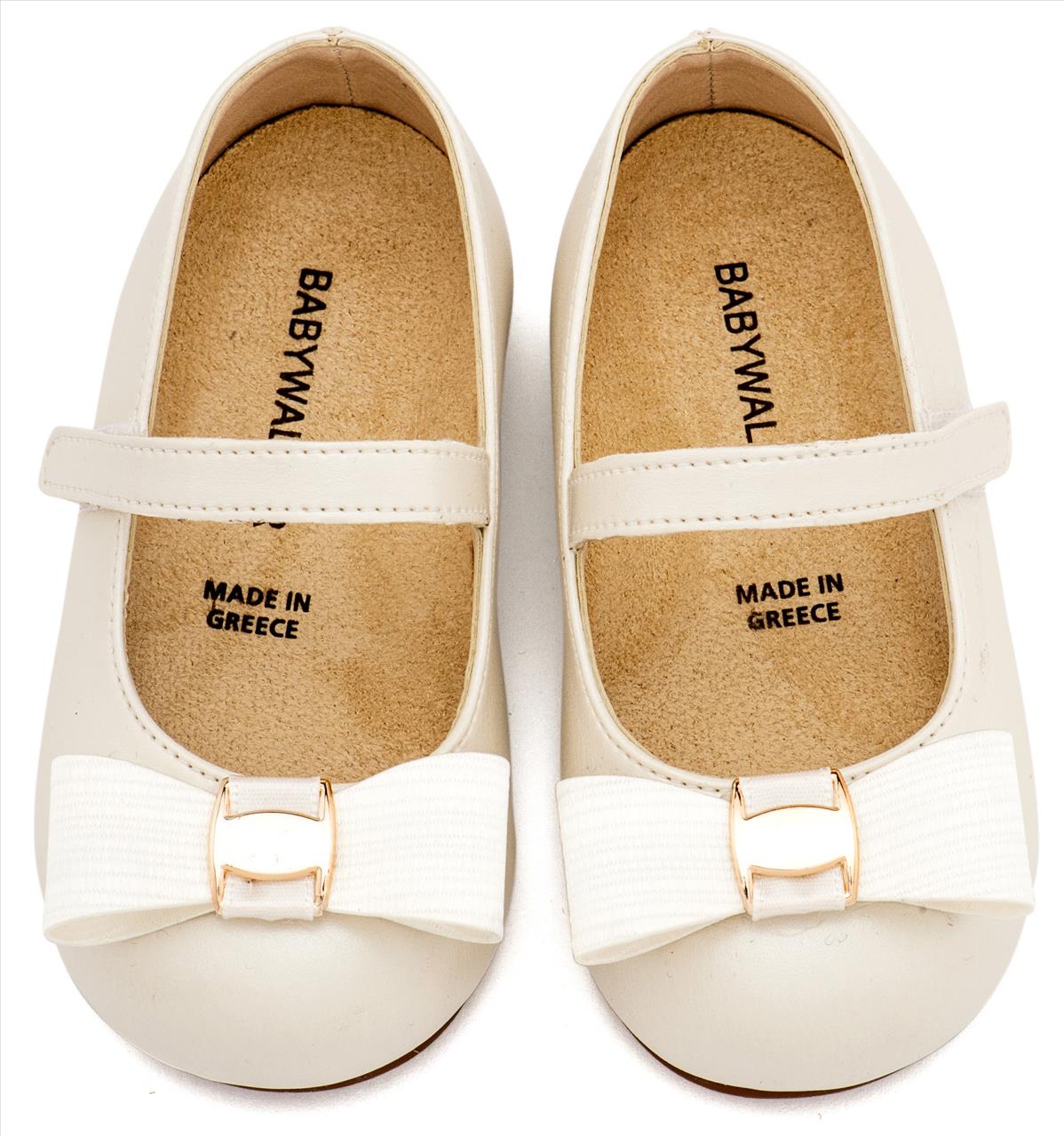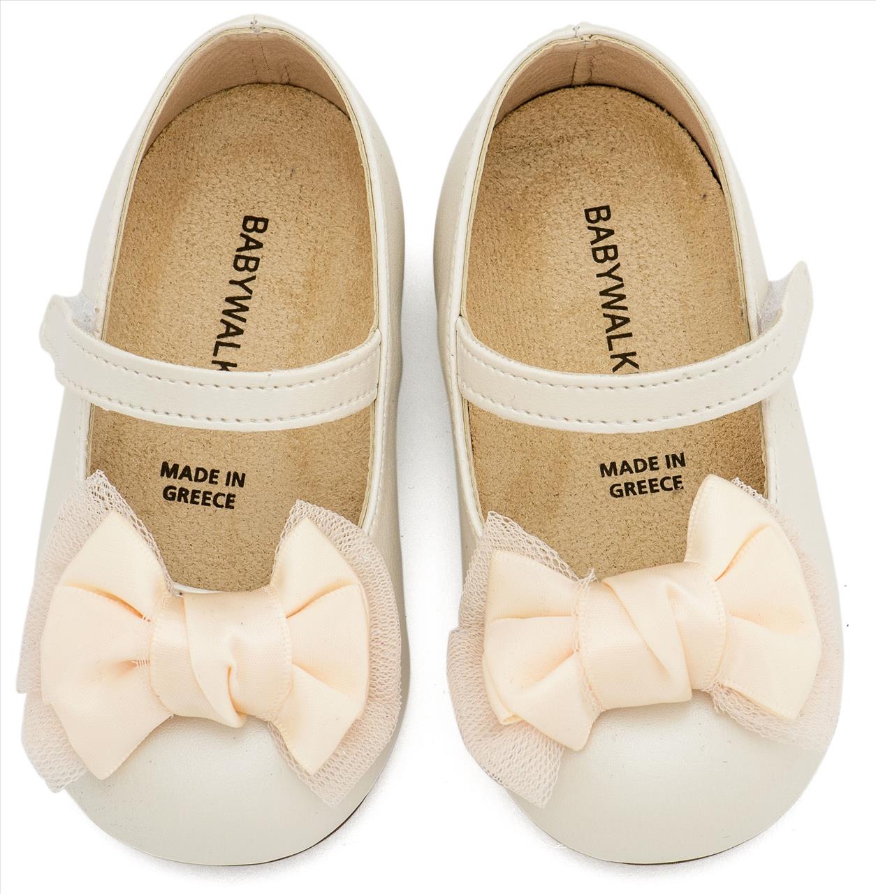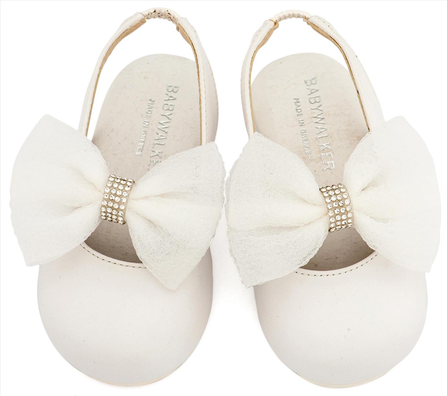 Δερμάτινο Γαλλικό Σαμπό Διακοσμημένο με Φιόγκο Οργάντζας και Στρας σε Λευκό Χρώμα baby walker